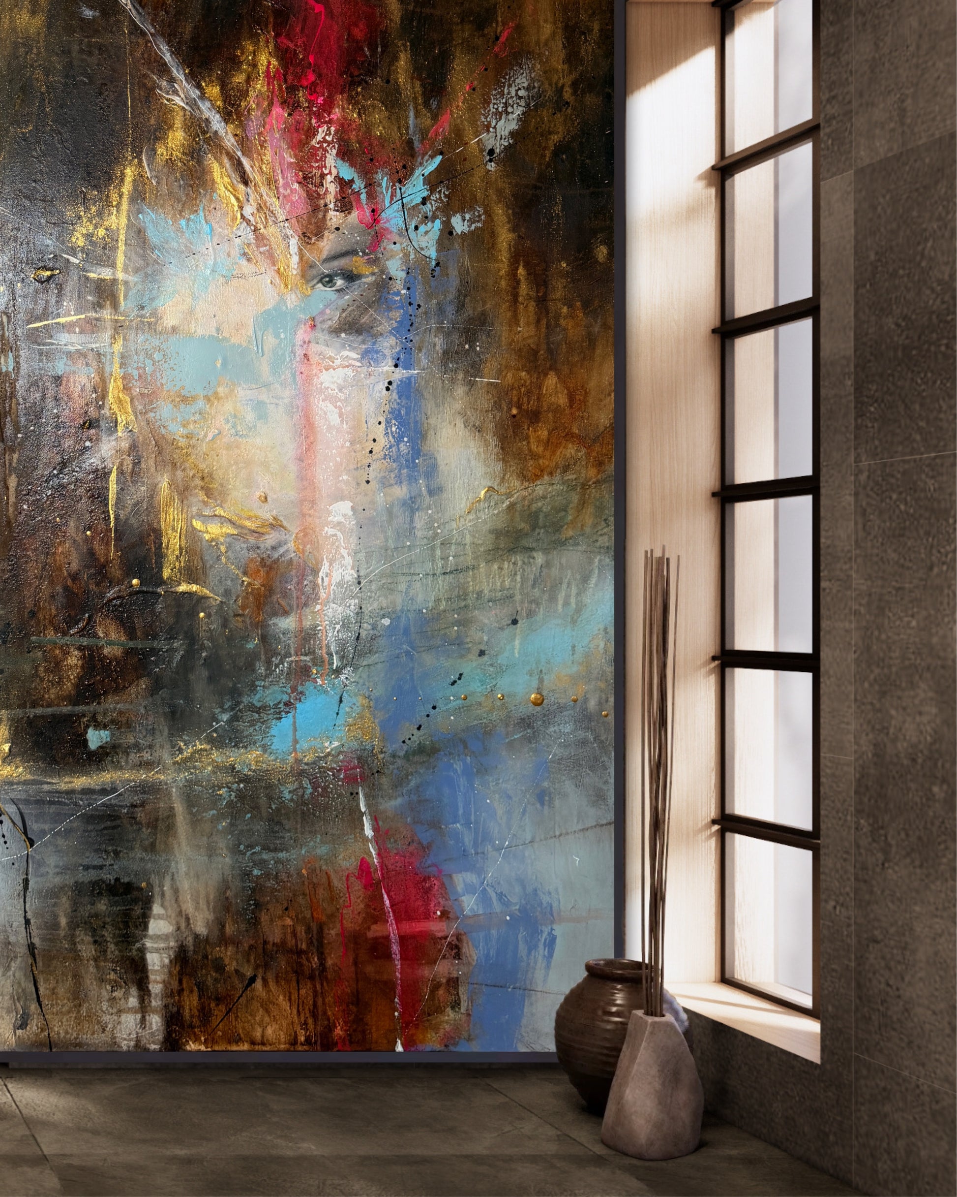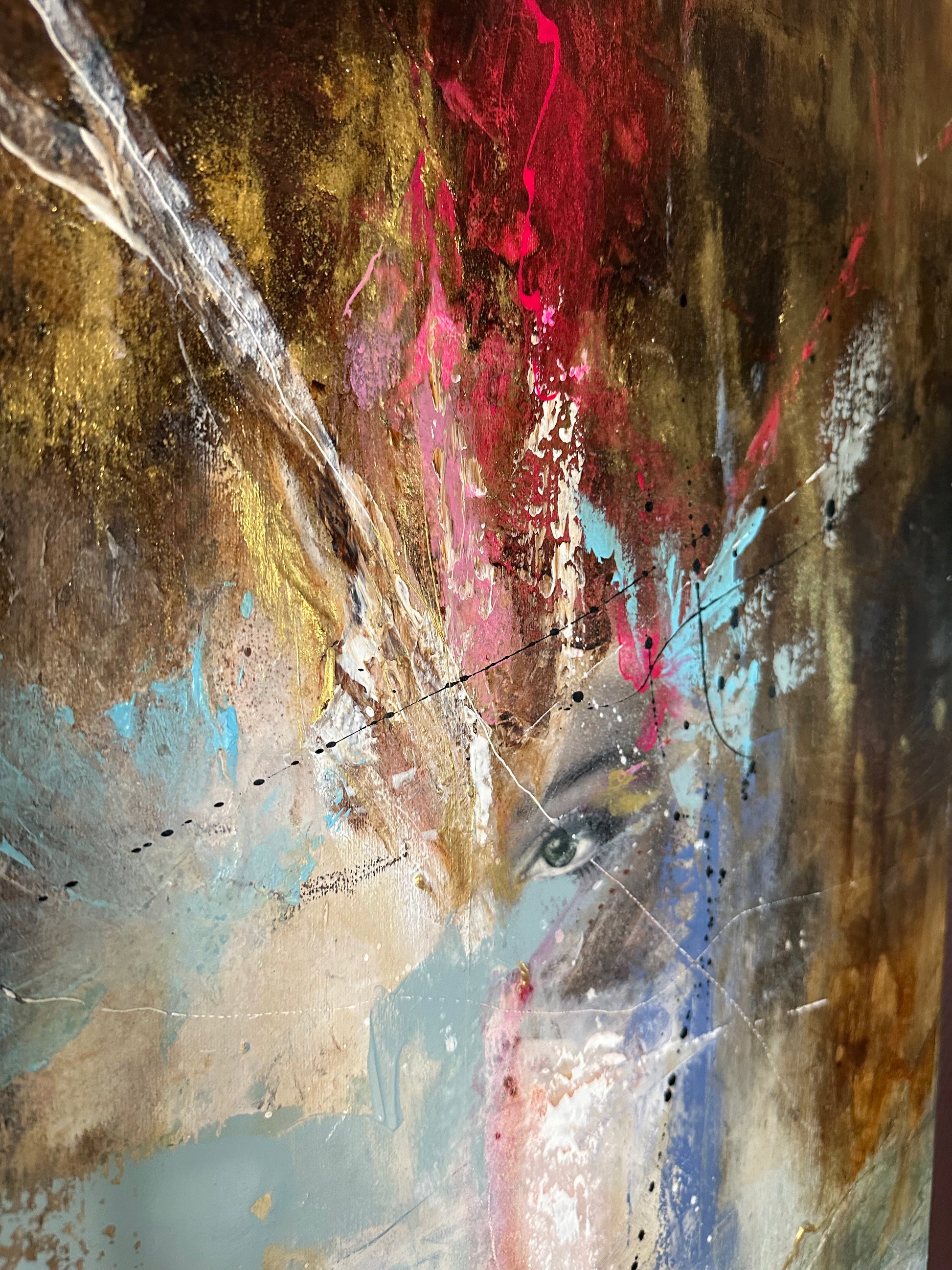• Teknikk: Mixed media med lag på lag av tekstur og ekspressive strøk